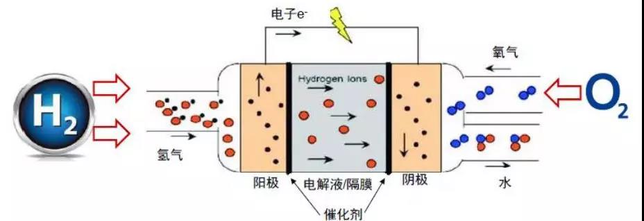 其工作原理是H2在陽極催化劑作用下被氧化成H+和e-,H+通過質(zhì)子交換膜達(dá)到政正極,與O2在陰極反應(yīng)生成水,e-通過外電路達(dá)到陰極,連續(xù)不斷的反應(yīng)就產(chǎn)生了電流。燃料電池雖帶有“電池”二字,卻不是傳統(tǒng)意義上的儲能設(shè)備,而是一種發(fā)電設(shè)備,這是燃料電池與傳統(tǒng)電池最大的區(qū)別。